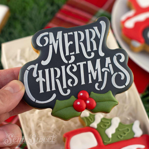 This Santa Beard Plaque cookie cutter is paired with the Believe Stencil. (Stencil sold separately.)