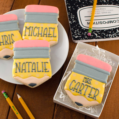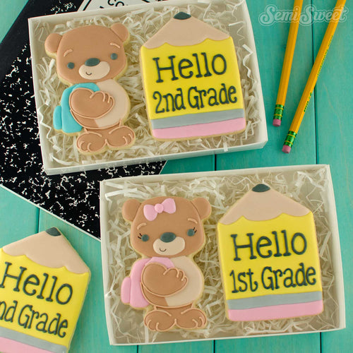 The LARGE size teddy is shown in the example photo with the Simple Pencil cookie cutter.