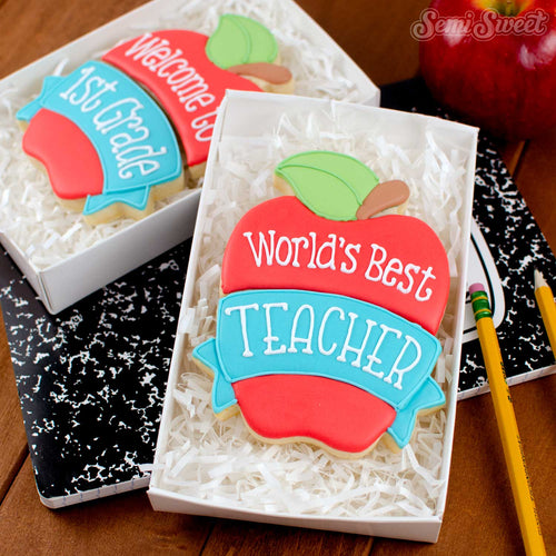 Giving a gift to your kid's favorite teacher? Make them smile with this apple cookie cutter. These apple cookies can be decorated in a number of ways. Enhance the presentation with coordinating, printable gift tags from Owl House Co.