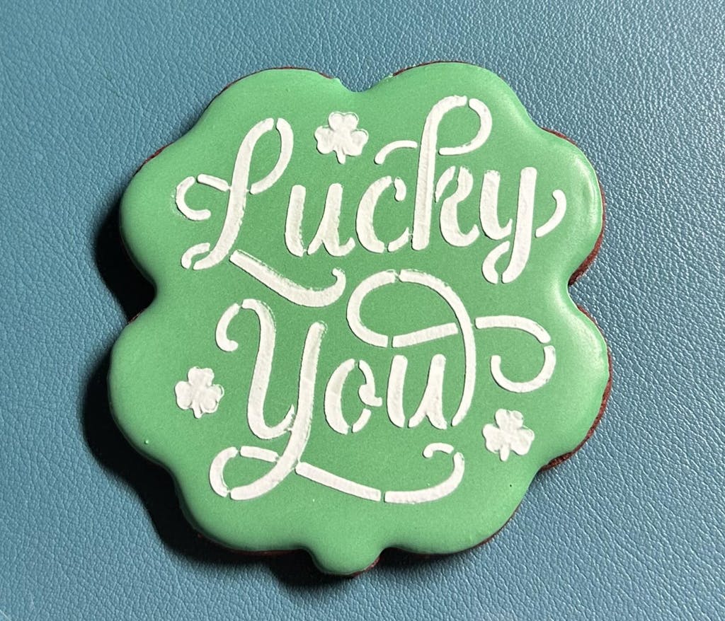 Enjoy the luck of the Irish with our Clover Lucky You Cutter & Stencil Bundle! This easy-to-use stencil allows you to add a festive touch to your St. Patrick's Day cookies with the phrase "lucky you." Spread the joy and add some charm to your baking with this playful bundle.