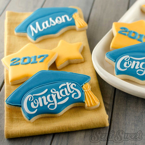 Get ready to sweeten up your graduation party with this versatile cookie cutter! Featuring a graduation cap and diploma with a customizable banner, this cutter is perfect for creating delicious treats and adding a personalized touch. Celebrate your graduate's success in a fun and unique way!