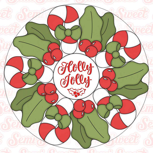 This Holly Jolly circle cookie stencil coordinates with the center circle (3.5" diameter size) of the LARGE PLATTERS ONLY.
