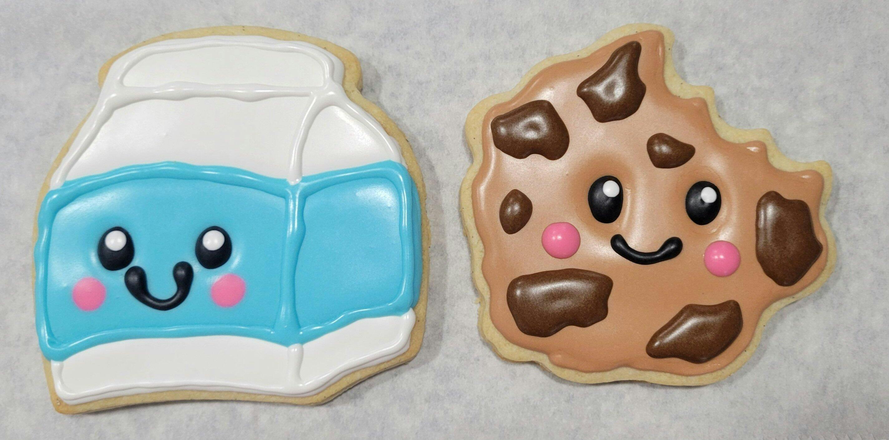 This milk and cookies cookie cutter set includes one milk carton and one chocolate chip cookie cutter. Great for "We go together like" Valentine's Day sets.