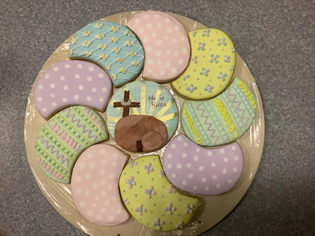 This overlapping egg platter cookie cutter works along with a center 3.5" circle cookie cutter. You can purchase both cookie cutters together, or as a single piece without the circle cutter.