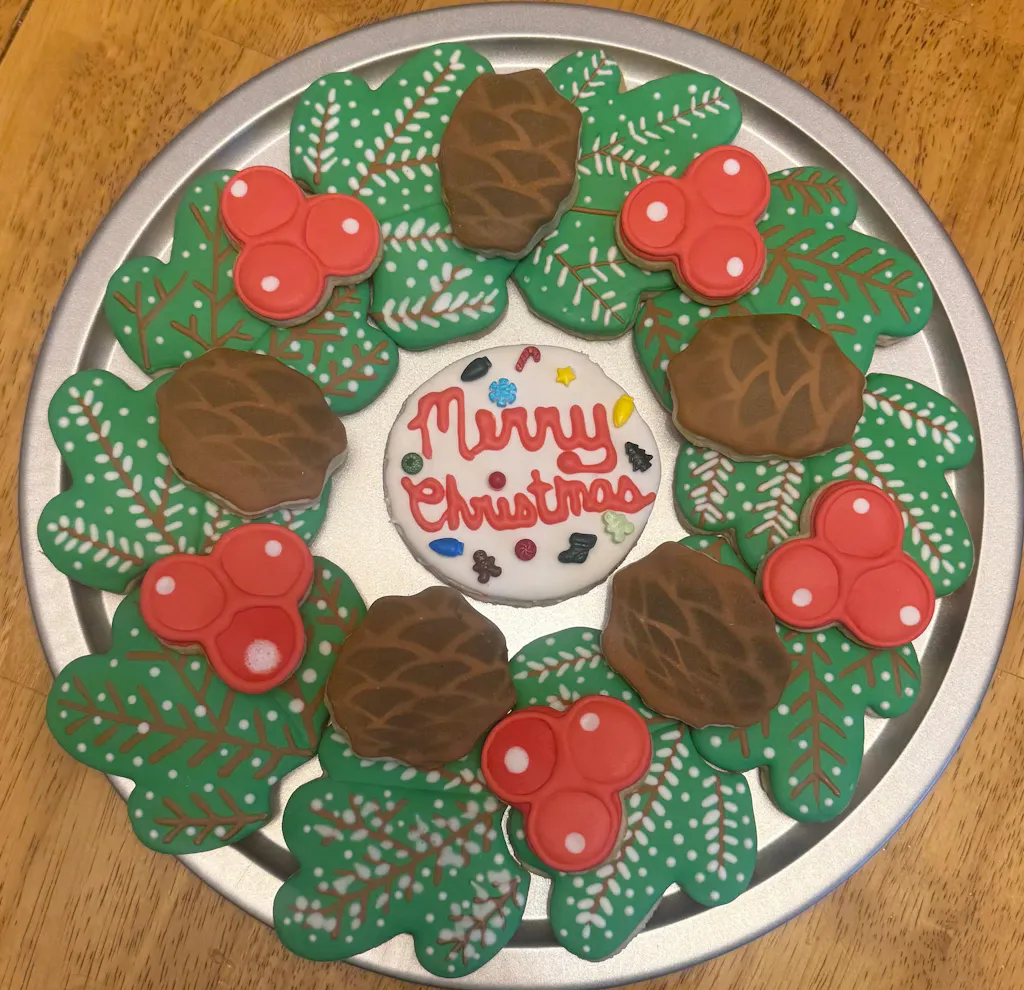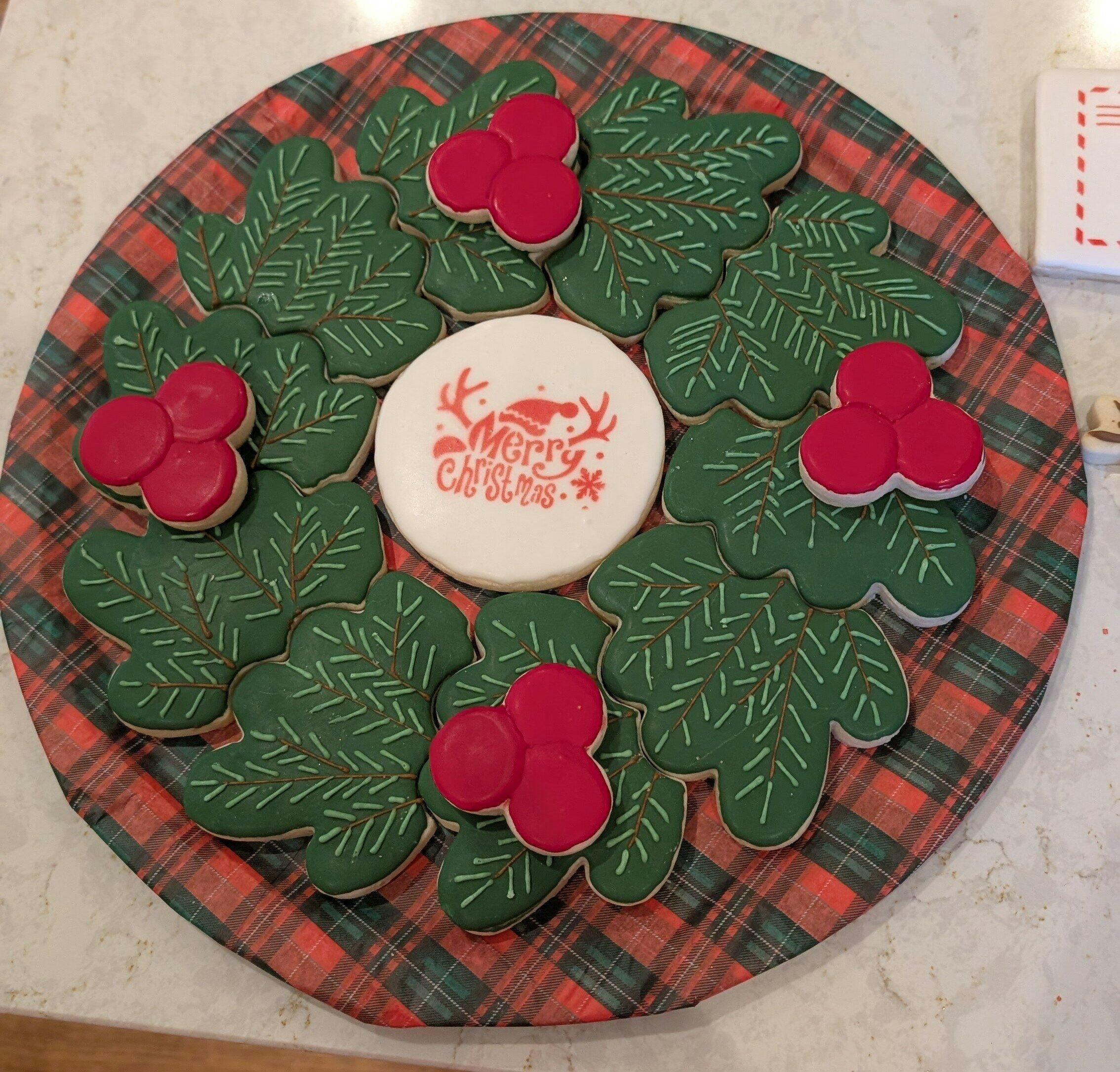 Decorating a Christmas Pine Wreath Cookie Platter with Royal Icing
