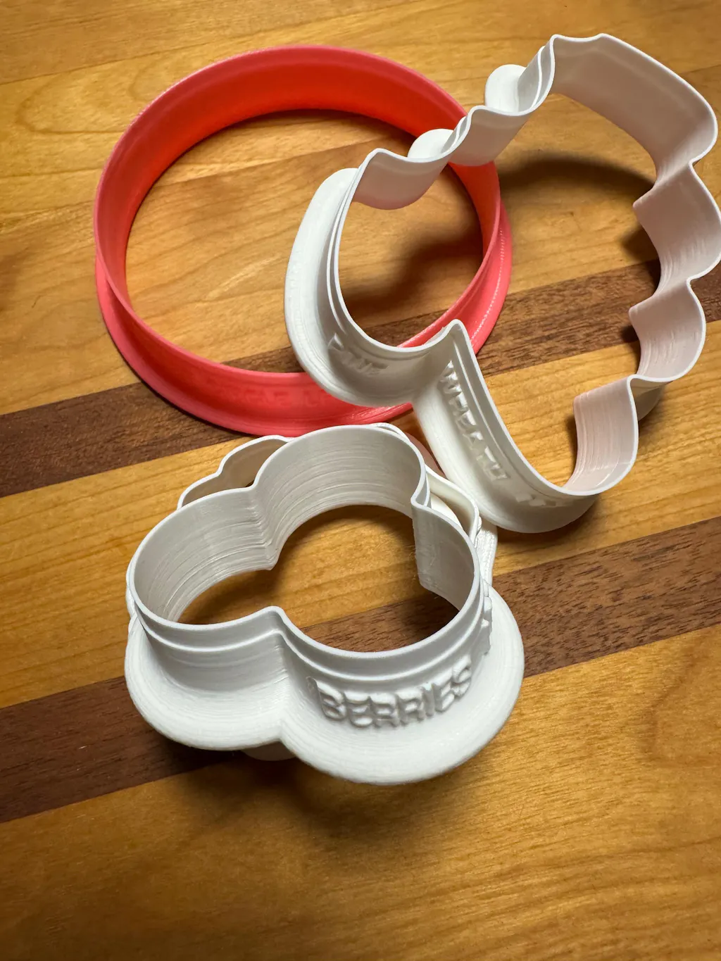This pine wreath with pine cone and berries cookie platter set works along with a center circle cookie cutter. You can purchase all 4 cookie cutters together, or as a 3-piece without the circle cutter.