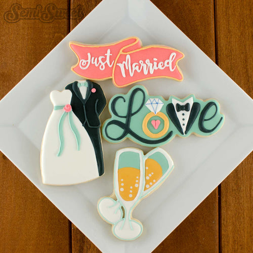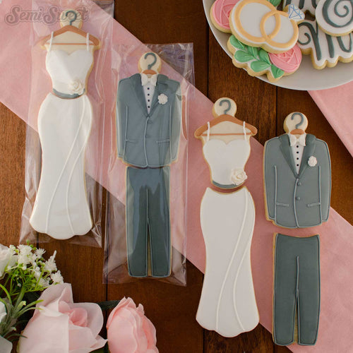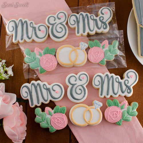 This 3-piece skinny Mr & Mrs set was designed to fit in 3"x12" cellophane bag sleeves. It includes 3 cookie cutters: a "Mr", a "&", and a "Mrs".