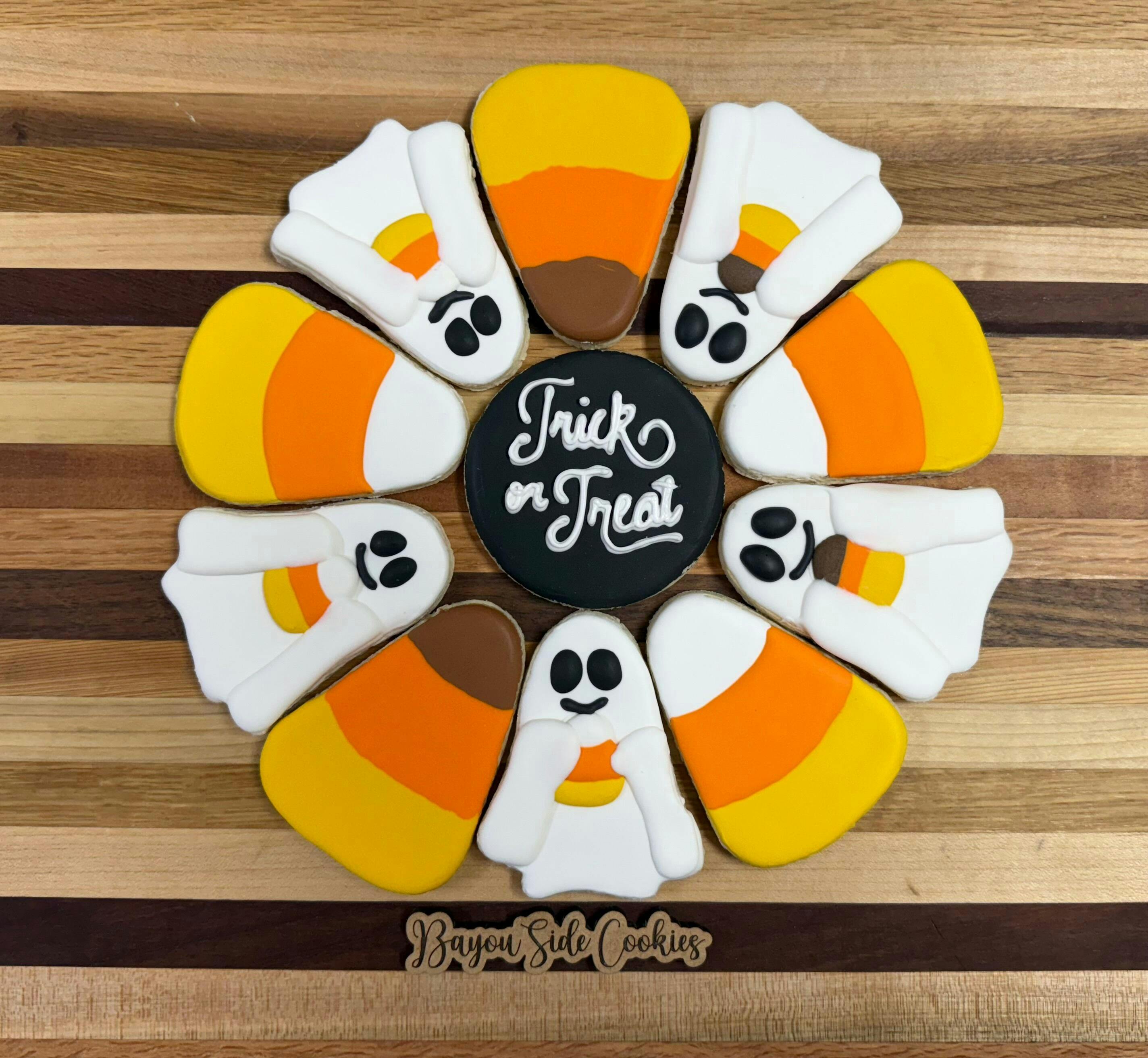 This Trick-or-Treat Monoline stencil creates whimsical typography quickly and beautifully. Custom designed to fit this the center of the LARGE center circle of this pumpkin platter.