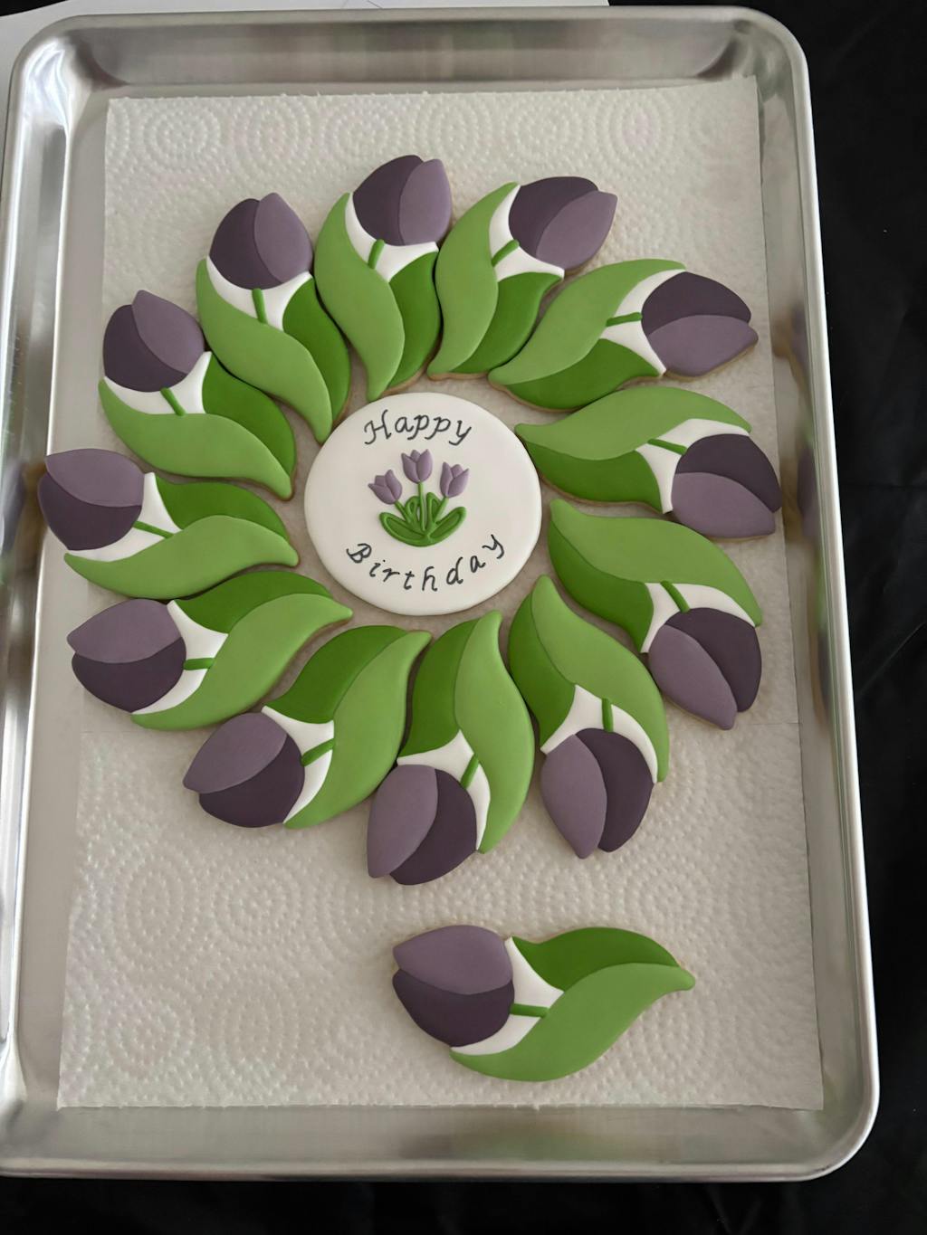 This tulip platter cookie cutter works along with a center circle cookie cutter. You can purchase both cookie cutters together, or as a single piece without the circle cutter.